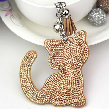 LLavero de gato de cristal con borlas bonitas, llavero con borlas ostentosas para mujeres y niñas, mochila con diamantes de imitación, bolso, accesorios de dijes